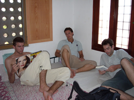 Cette fois on part a 4 Enfields sur les chemins de Pondicherry. Guerric, Marco, Antoine (un ami de Marco venu lui rendre visite), et moi. Sur la route, il fait bien sûr tres chaud, et je me suis fait crame les bras sans m'en apercevoir... Arrives la-bas, on va manger : steak au rockfort, puis on se balade. Et ensuite, on passe l'apres-midi dans une piscine au 7eme etage d'un grand hotel luxueux... La classe !